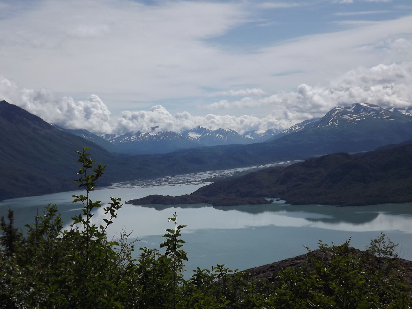 The trail was narrow and winding with lots of overgrowth. I am actually on the trail. This is in Kenai National Wildlife Refuge. We never see any wildlife. I spend the whole time making noise. I sure don't want to surprise a momma bear and her cubs.